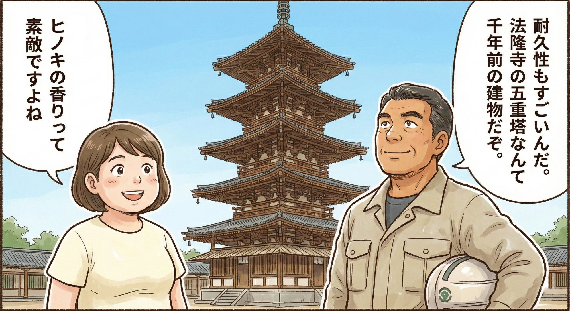 耐久性: 法隆寺の五重塔が証明している通り、1000年以上の寿命を持つと言われます。