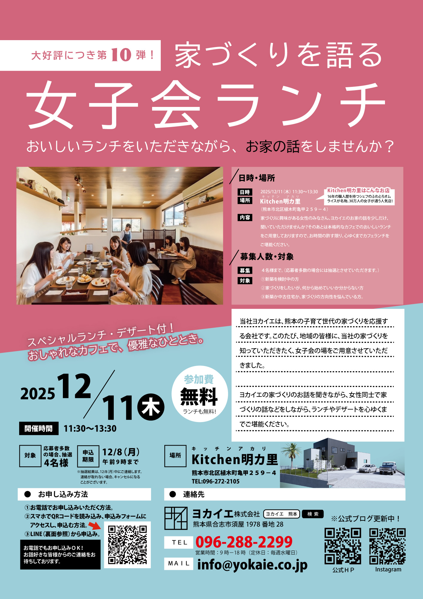 「家づくりを語る女子会ランチ」イベント詳細・お申し込みページ https://yokaie.co.jp/woman.html