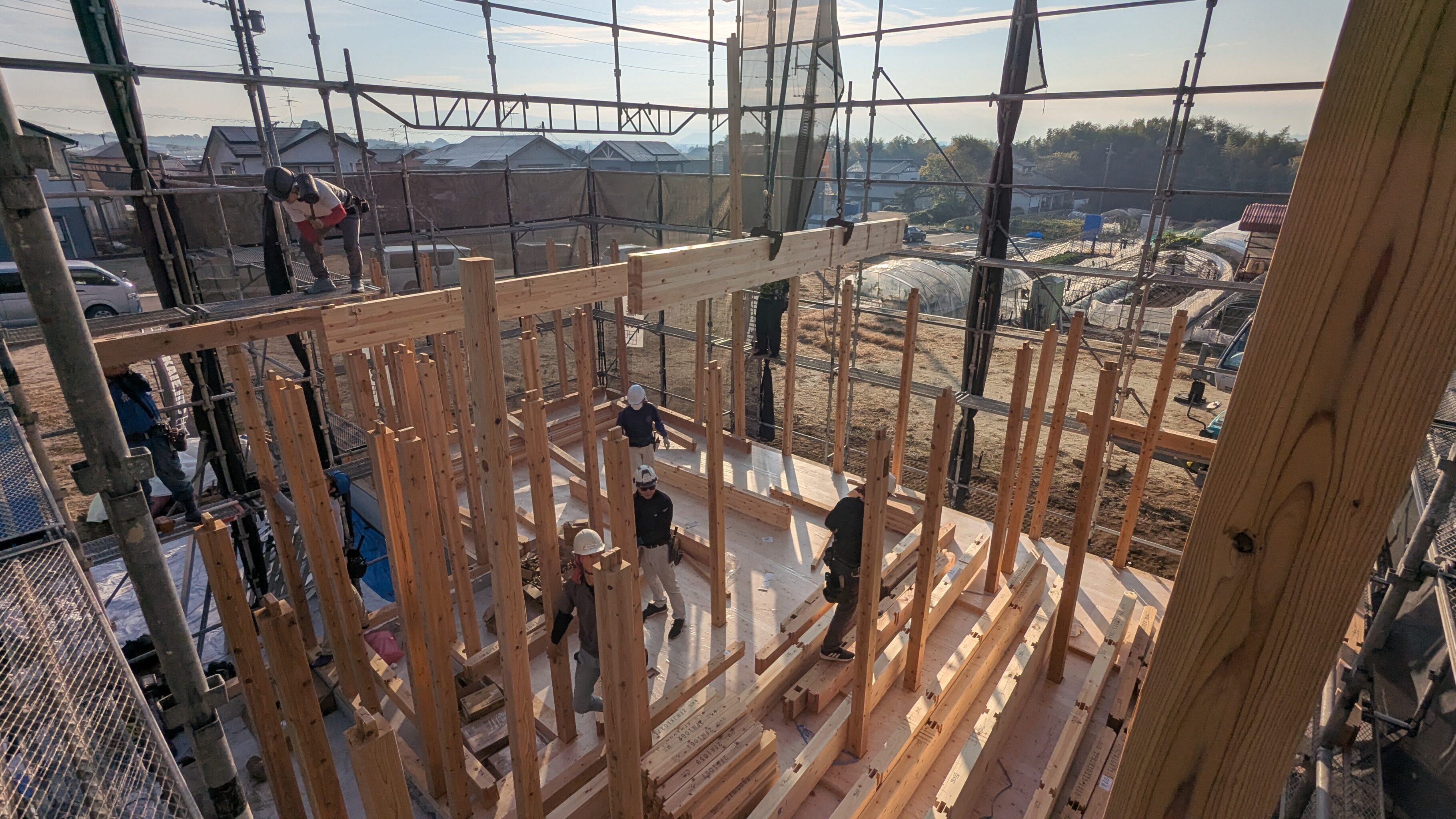 普段は1人で作業されることの多い大工さんなんですが、上棟になるとまさにワンチーム!