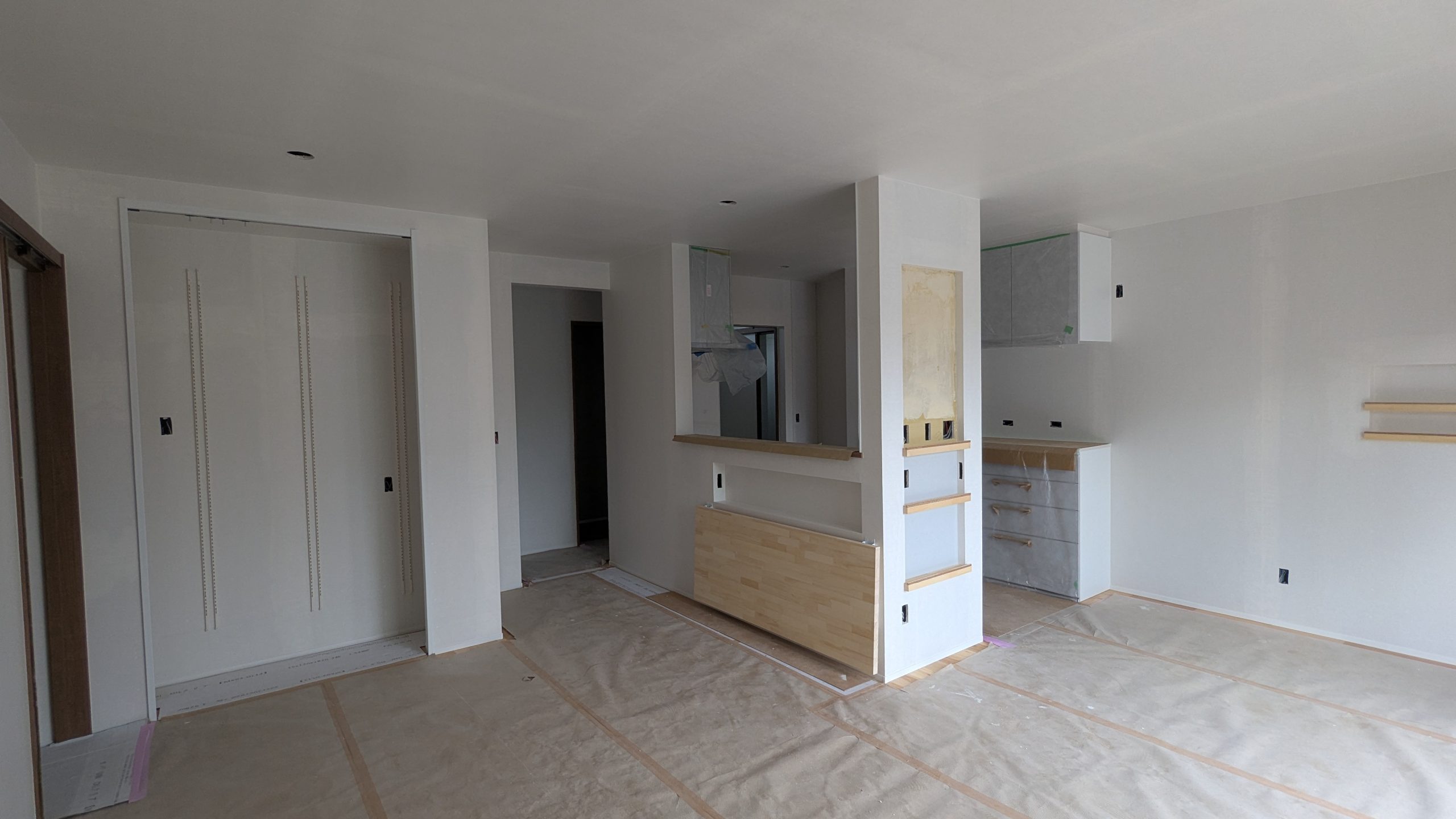 前回ブログにて紹介した、PB(プラスターボード)の上から、サンゴ礁の仕上げを施工する為の下地の紙を貼ってあります。