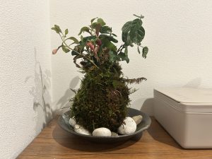 帰り際、「花日和」さんでピンクの葉が可愛い苔玉を発見 😳