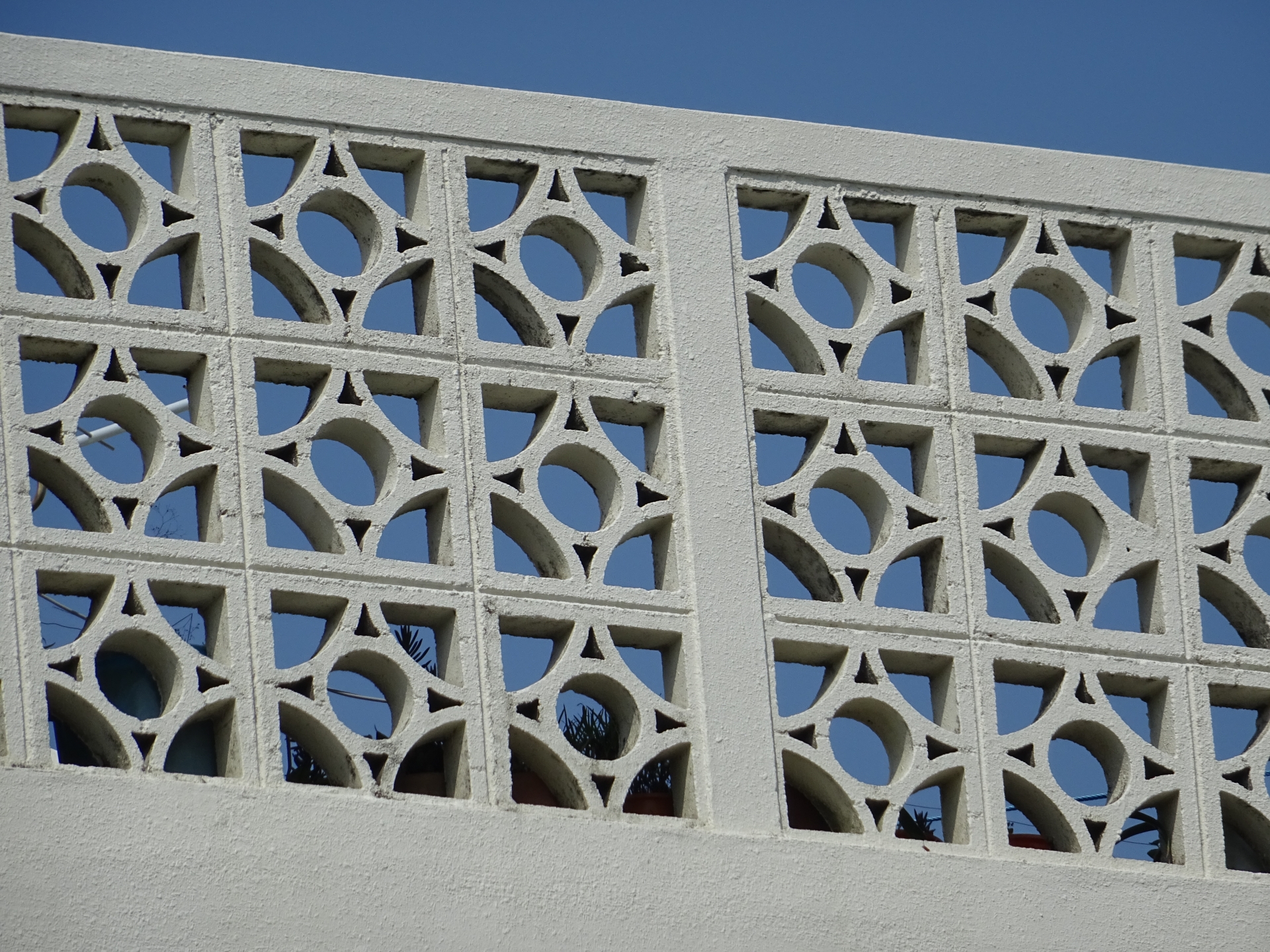なお、花ブロックとは、幾何学的な模様の抜き穴が施された、コンクリート製の透かしブロックのことです。幾何学模様のブロックを積んでいくと、まるで織物のような美しい壁面に仕上がります。