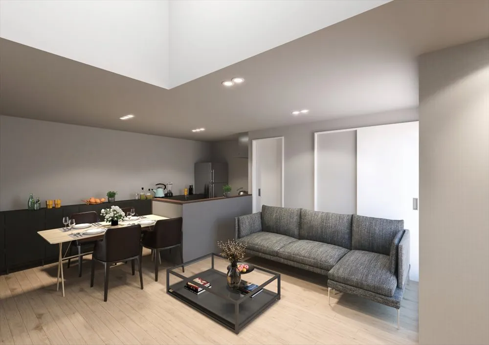 堅牢かつスタイリッシュなガルバリウム鋼板の外装材が使えるほか、内装材は自然素材の「漆喰塗り壁」や「無垢床」をお選びいただけます。