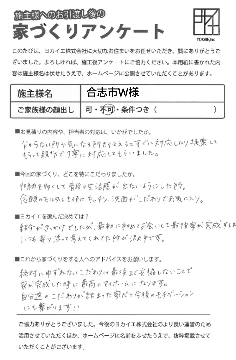 紹介がきっかけでしたが、最初に初めてお会いして最後家が完成するまでいつも寄り添って考えてくれてた所が決め手です。