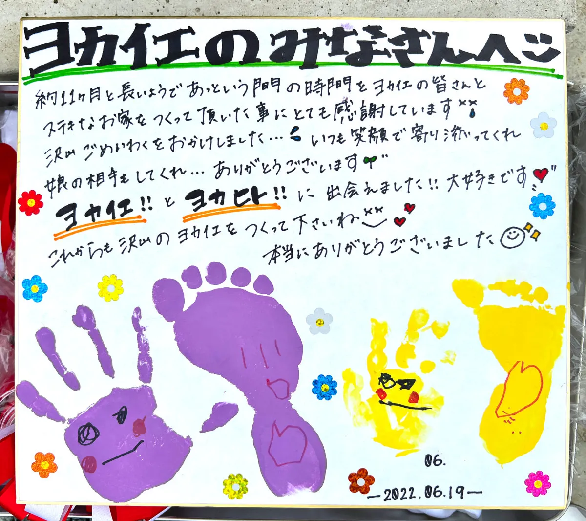 ヨカイエスタッフへの思いが書かれており、頑張ってきた担当スタッフは、